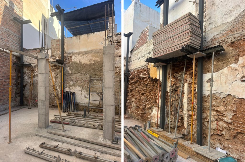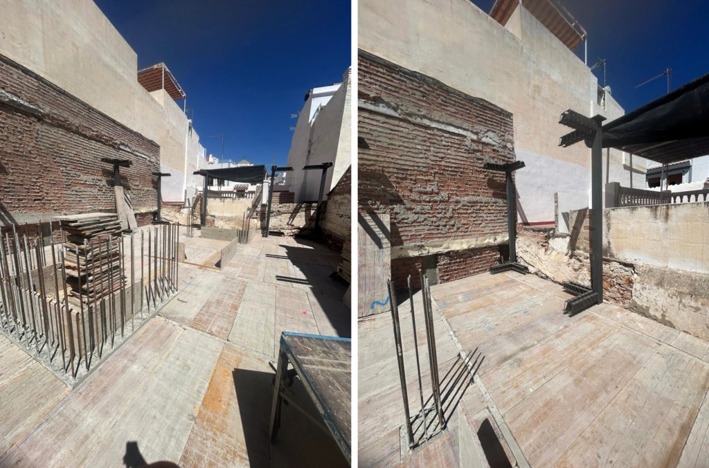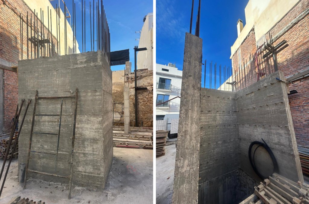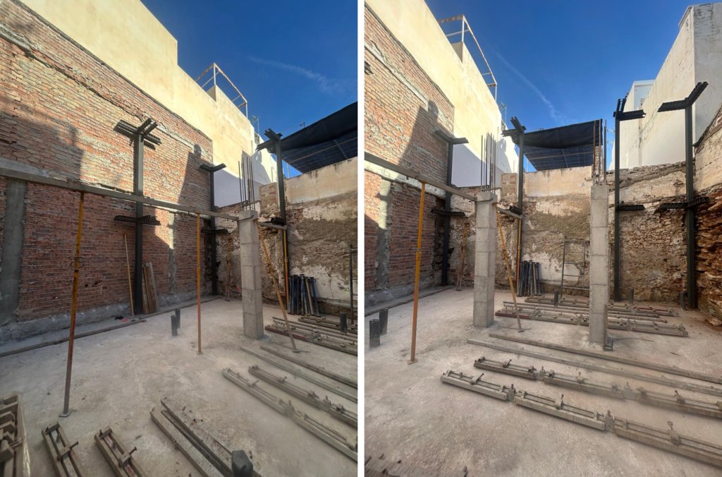 Hemos completado una etapa importante: la instalación del encofrado y el vertido de los pilares de hormigón armado.